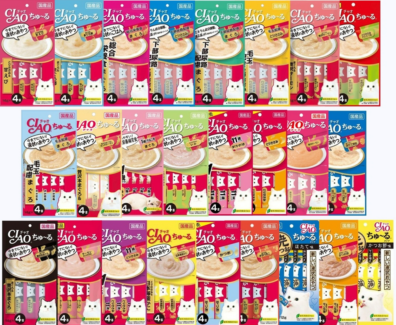 商品成份(鮪魚):鮪魚、雞脂、鮪魚萃取物、含DHA、EPA之精製魚油、Oligo糖、増粘剤(加工澱粉)、增黏多糖類、牛奶鈣、檸檬酸鉀、維他命E、紅麹色素、緑茶萃取物